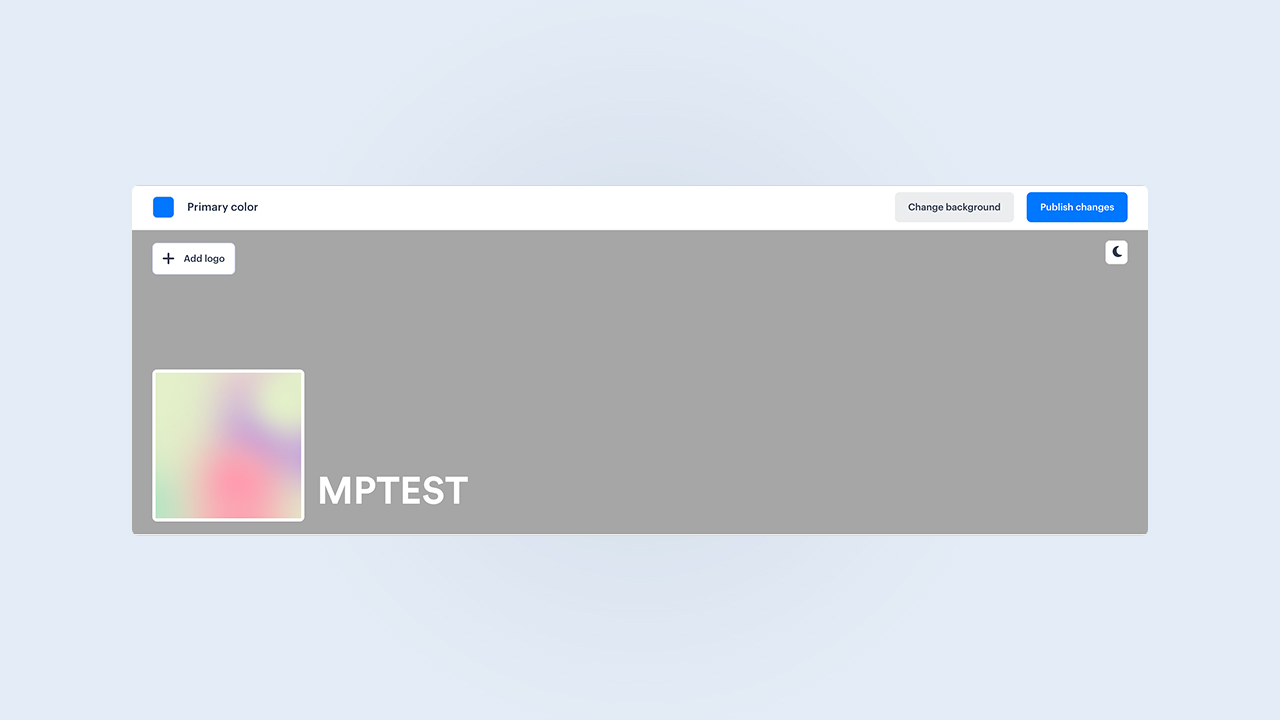 Tip: When adjusting the primary color, ensure you choose a color that is visible for both light and dark mode. You can switch between these modes by clicking on the sun/moon button at the top right of the header.